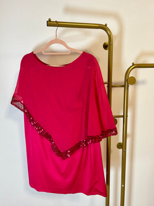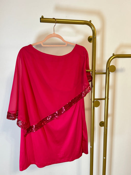 Cold Shoulder Overlay Asymmetric Chiffon Sequin Dress - Large