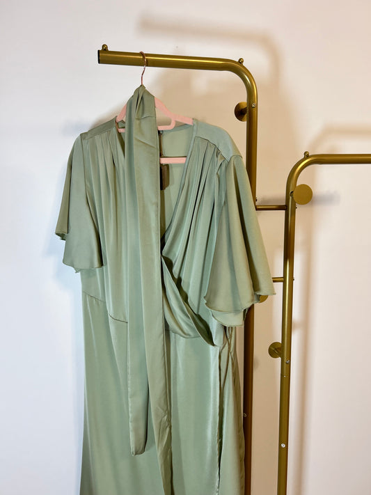 Butterfly Sleeve Knot Side Wrap Hem Dress - 2XL - Light Green