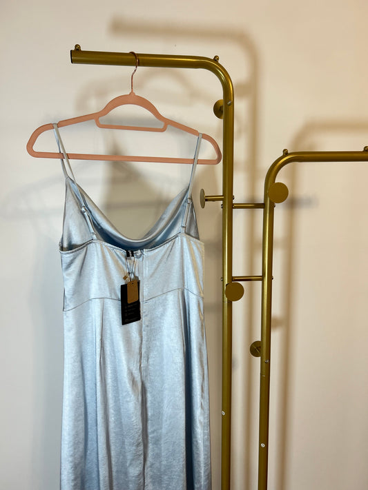 Aigeman Paghetti Straps Backless Slit Leg Maxi Dress - Medium - Sky Blue